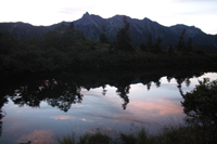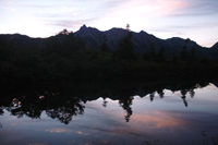 いきなり、夕刻の鏡池です。日が沈んでから槍穂が出てきてくれました。