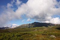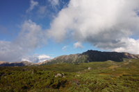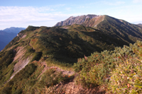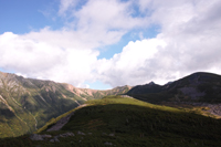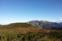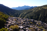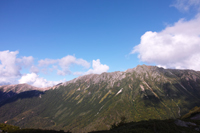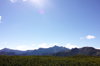 小屋でビールとソーセージで乾杯し、一眠りすると、晴れてきました。高台に登ると、薬師岳、水晶岳、黒部五郎岳、、、どれもそそられます。