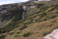 ここは第2雪田だったか、チングルマが咲いてました。雪田というだけあって、季節がずれてるのか。