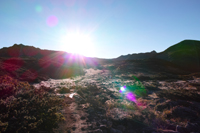 朝日です。まずは双六小屋を目指します。