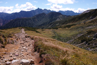双六小屋の次は三俣山荘を目指します。今回は巻道を。